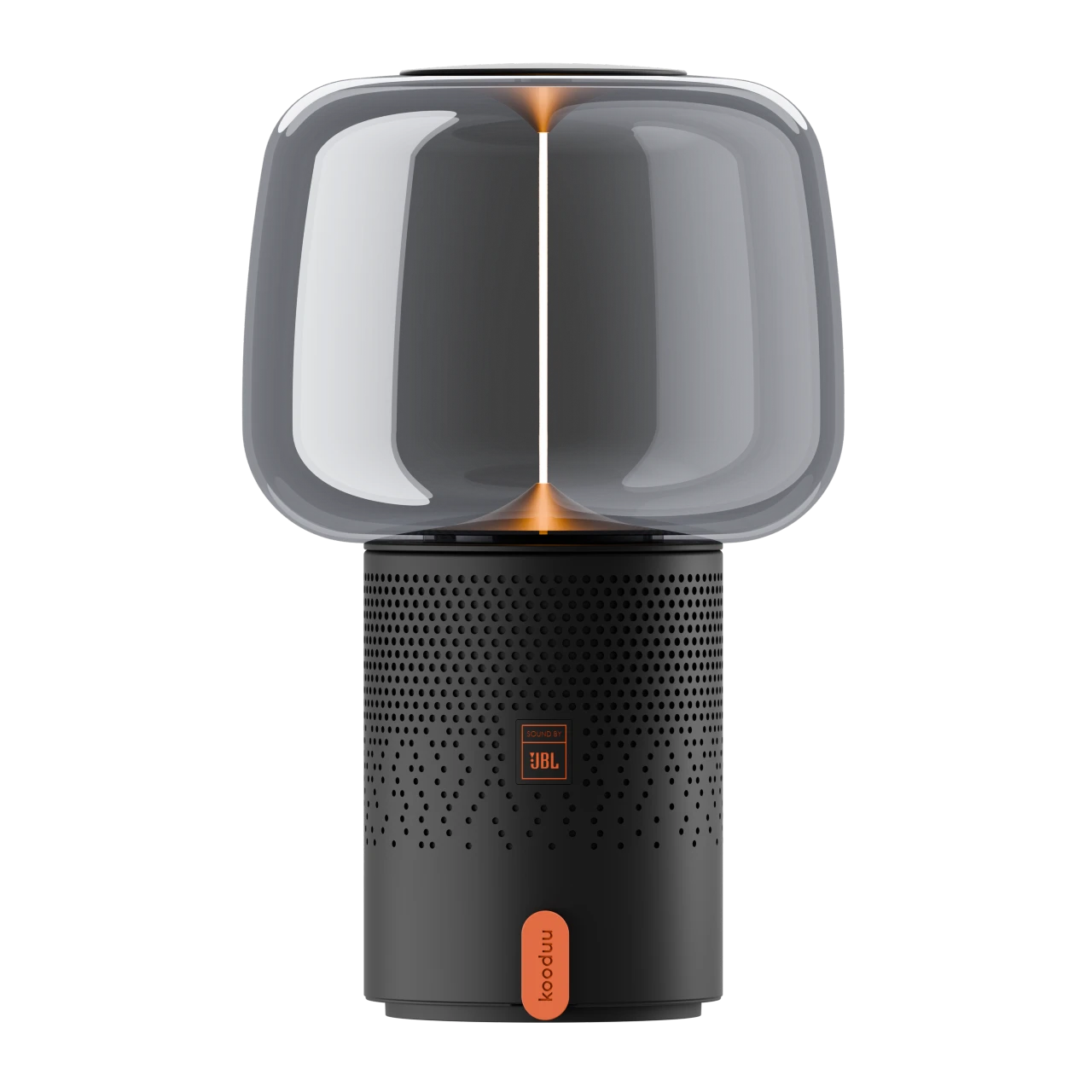 The Kooduu Serena PLAY Bluetooth speaker lamp, in the color Anthracite, combines powerful and rich Sound by JBL audio technology with a soft, warm light, diffused by a filament-style LED strip embedded in a sculptural glass top. This one-of-a-kind design blends high-quality Bluetooth sound with nostalgic lighting — a truly unique combination. Elegant, portable, and inviting, it offers a 360° experience of light and sound in perfect harmony, transforming any space into a magical moment filled with music and ambiance.