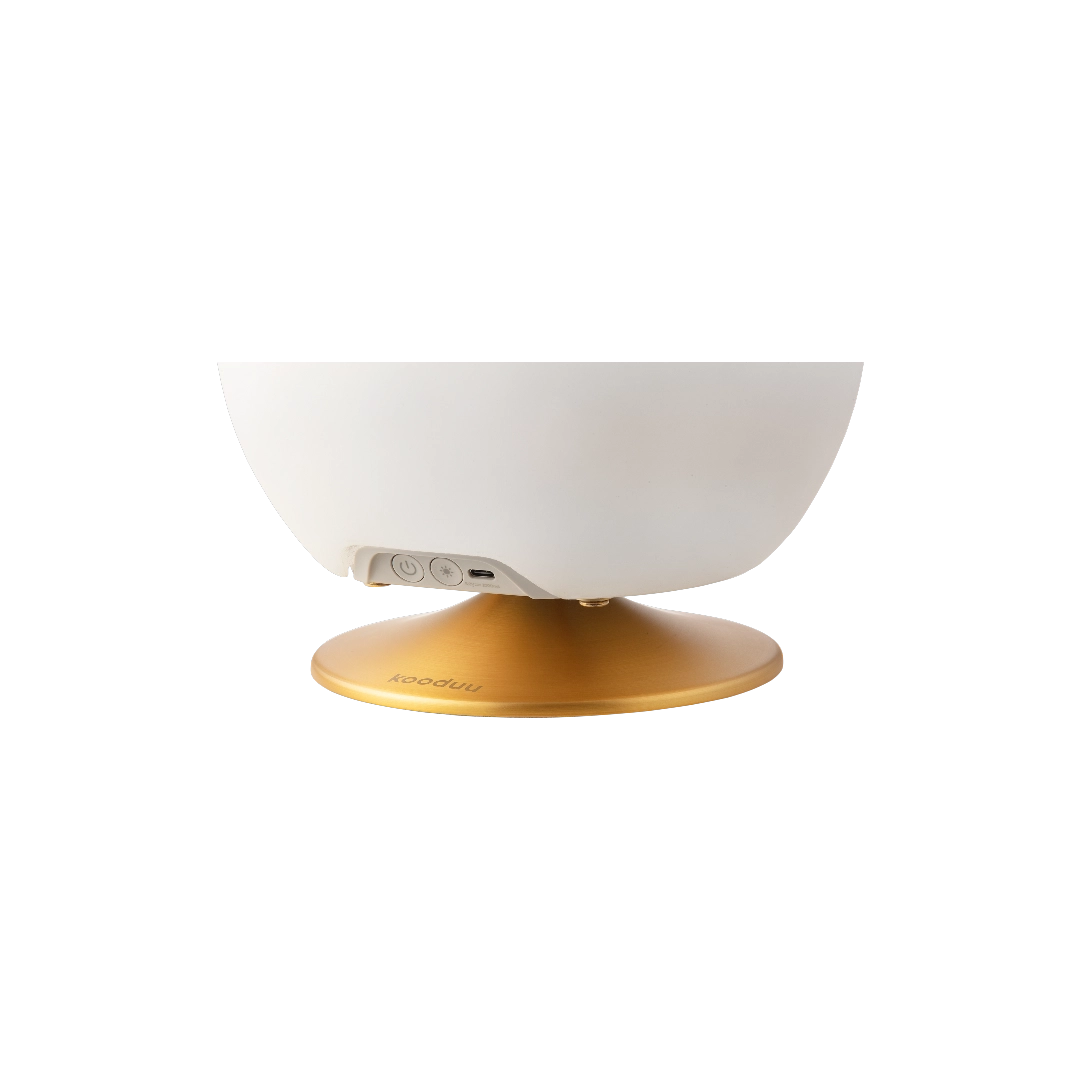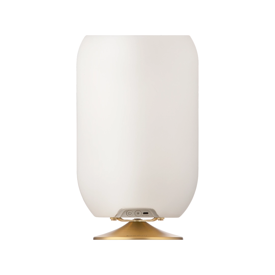 The Kooduu Atmos Brass combines the luxury of a lamp, the convenience of a drink holder, and the pleasure of a Bluetooth speaker in one chic cylindrical design.