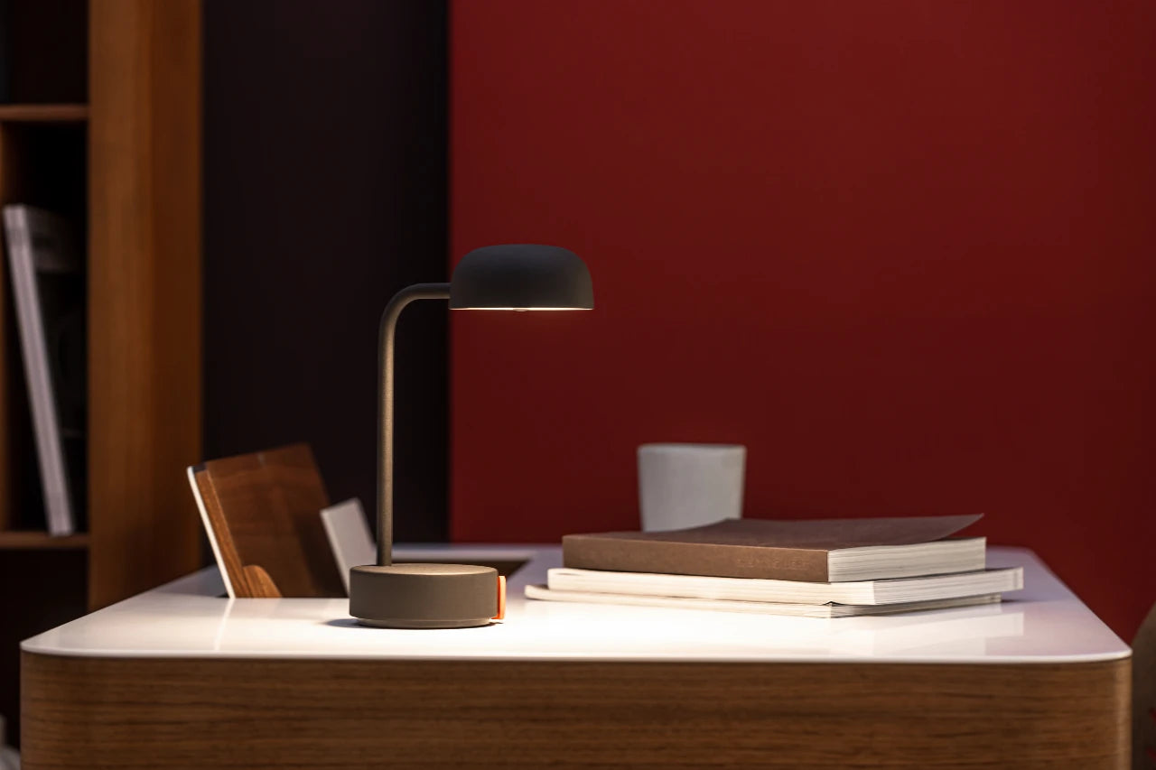 The Fokus Anthracite is a sleekly stylish, rechargeable table lamp that provides direct light, dimmable to desired levels for intense focus on tasks.