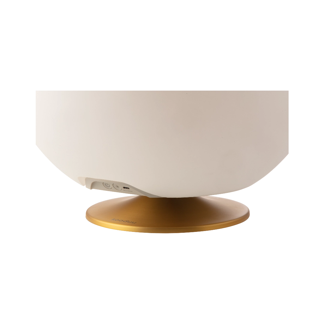 The Kooduu Sphere Brass is a sleek and rounded Bluetooth speaker and dimmable LED light with built-in drink holder all in one. The spherical shape evenly distributes warm, dimmable light and balanced sound thanks to Kooduu's Bright Sound Technology™ and Jacob Jensen Design's geometric and minimalist approach.