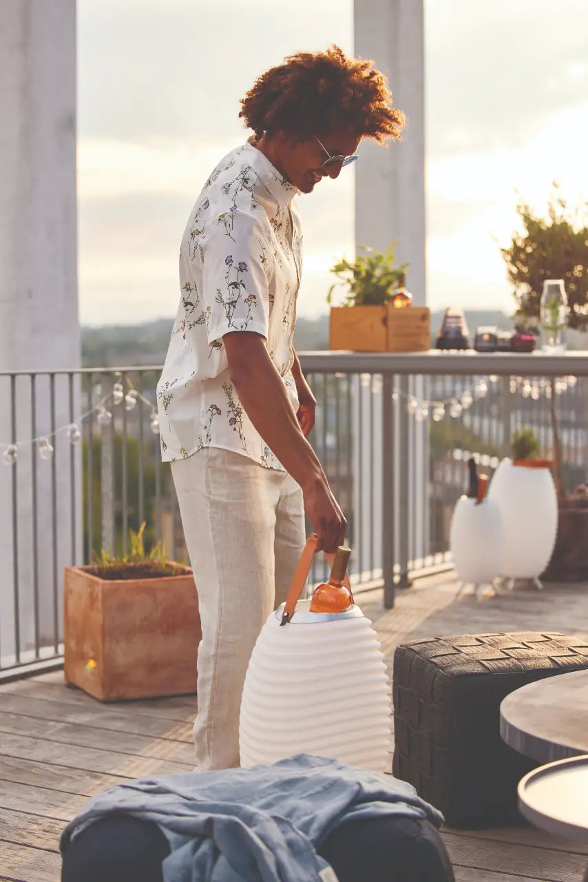 The Synergy is 100% portable thanks to its built-in rechargeable battery. So take your Synergy outside to your backyard, patio or balcony and enjoy your music and ambient light for hours. Or let the Synergy be the center of attention in your home. The choice is yours!