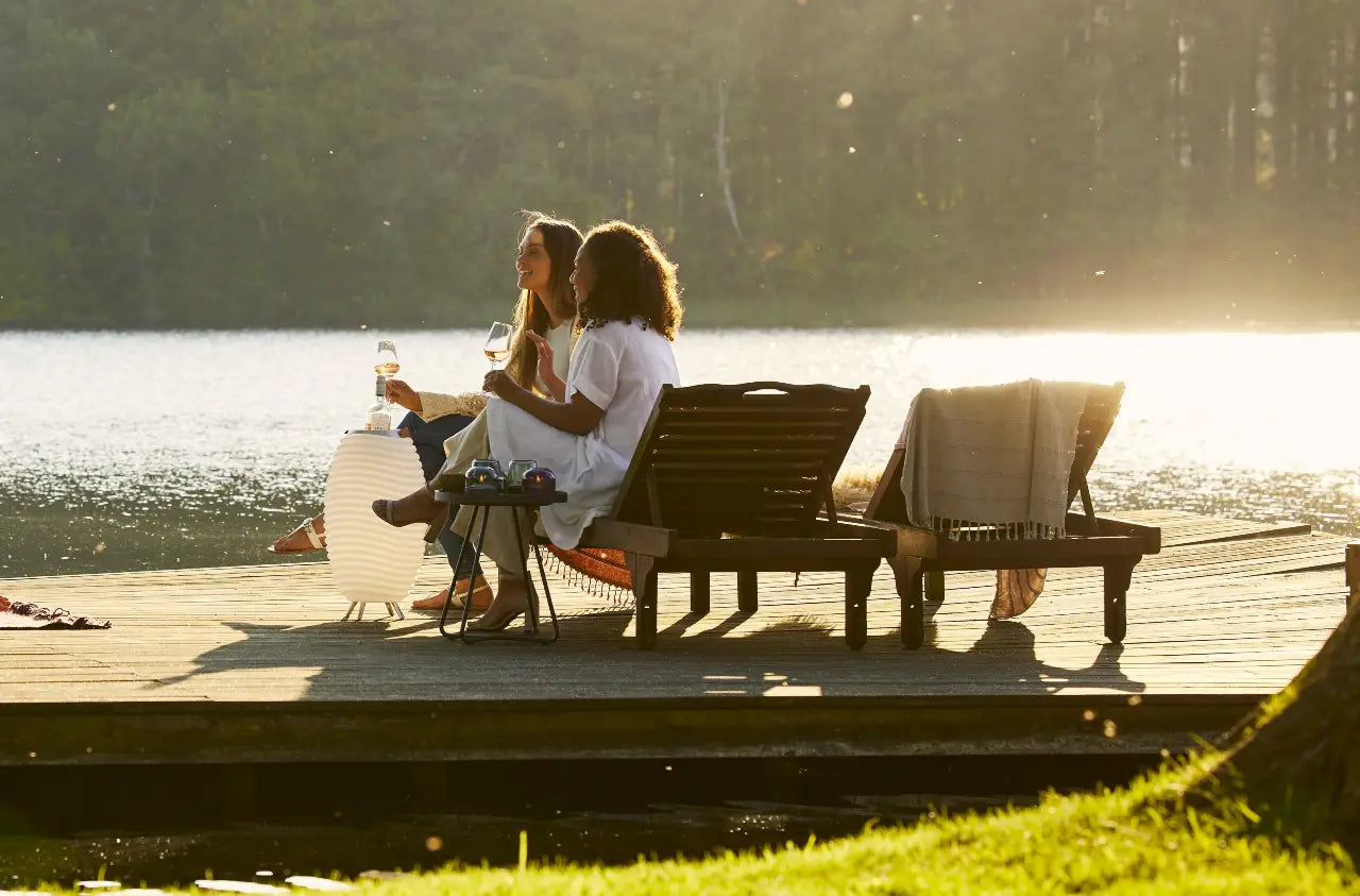 The Kooduu Synergy 65 is a dimmable design LED lamp with 4 light intensities, a Bluetooth speaker and a drink holder or wine cooler all in one.
